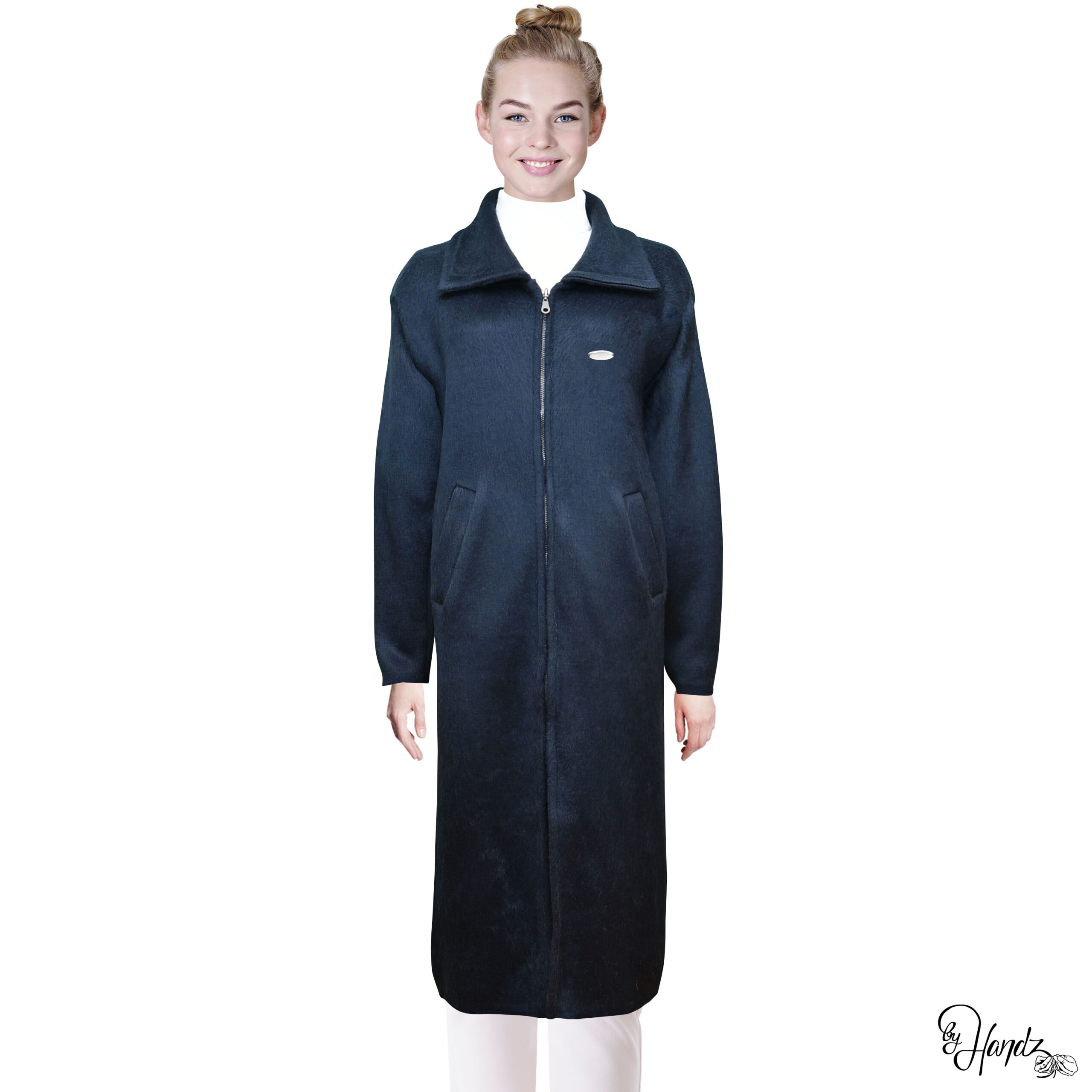 Alpaca 25% | Wool 25% | Cotton 25% | Acrylic 25% (to create an unique coat, soft but high quality).  Handmade with an Ancestral Technique.  Long & single color, to stylize the silhouette.  Customization is available.  Fast shipping worldwide included in price.