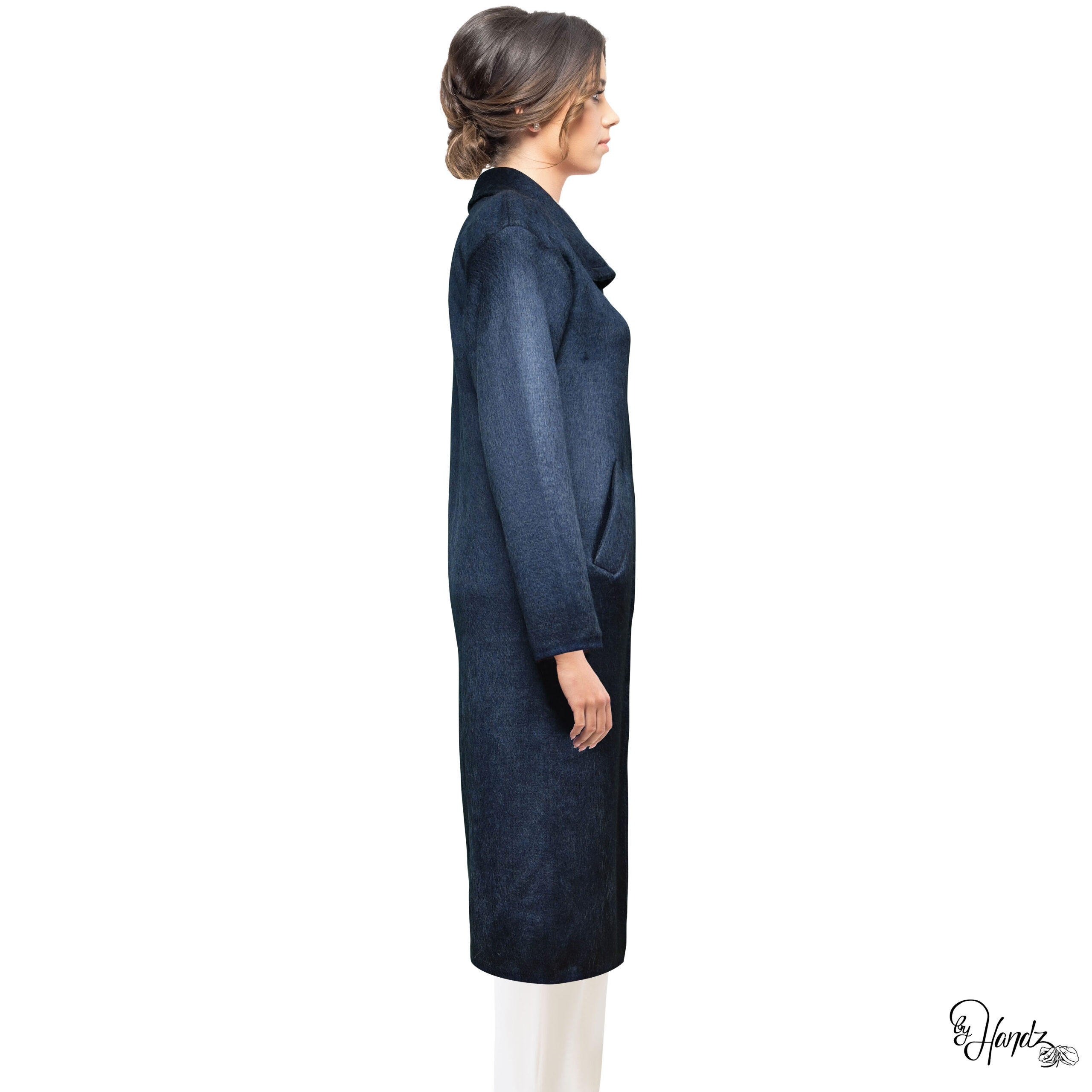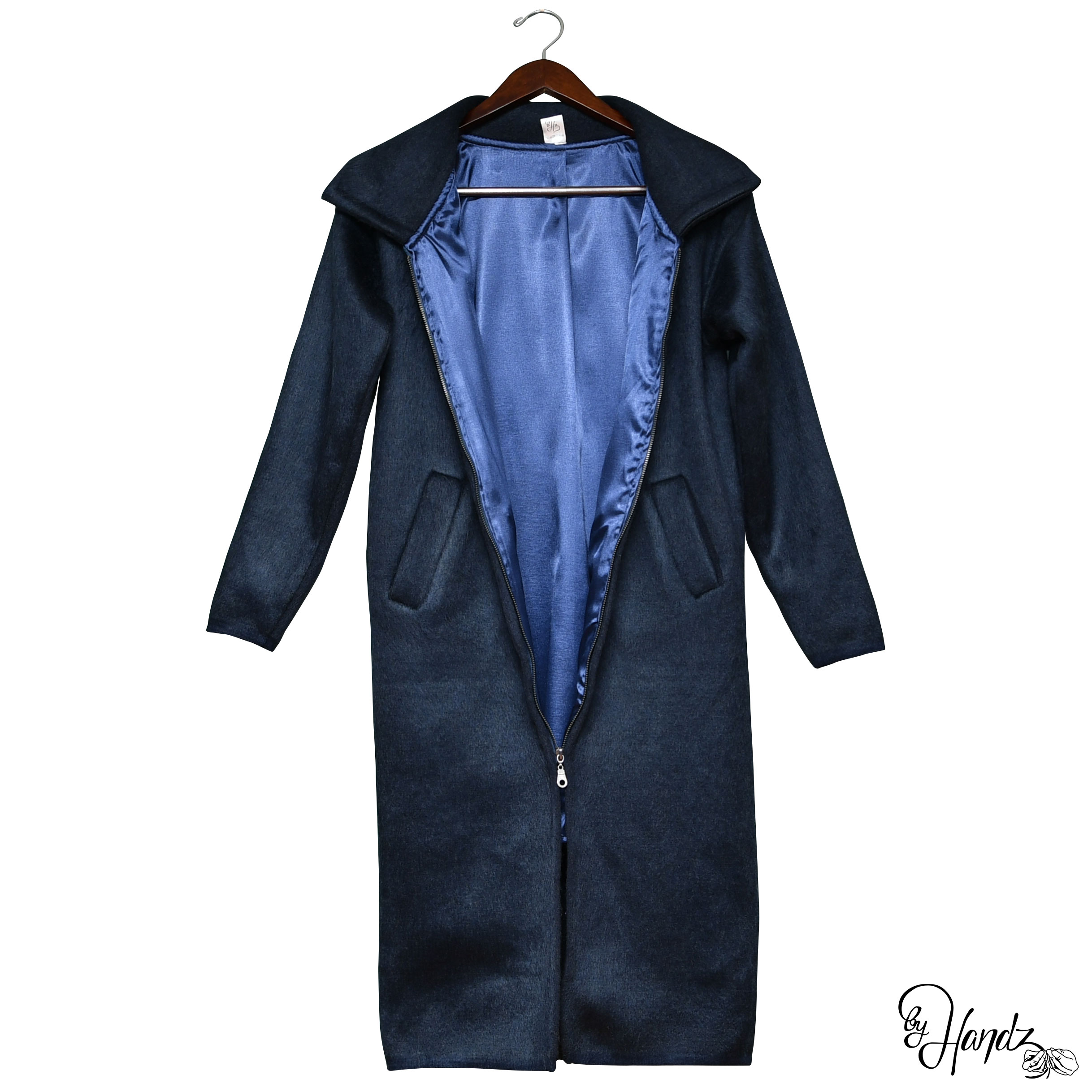 aa11. Ancestral Coat | Long Length With Collar | Navy Blue