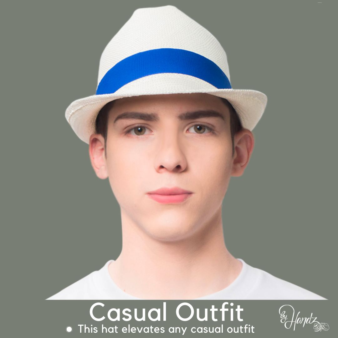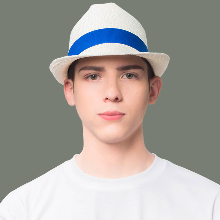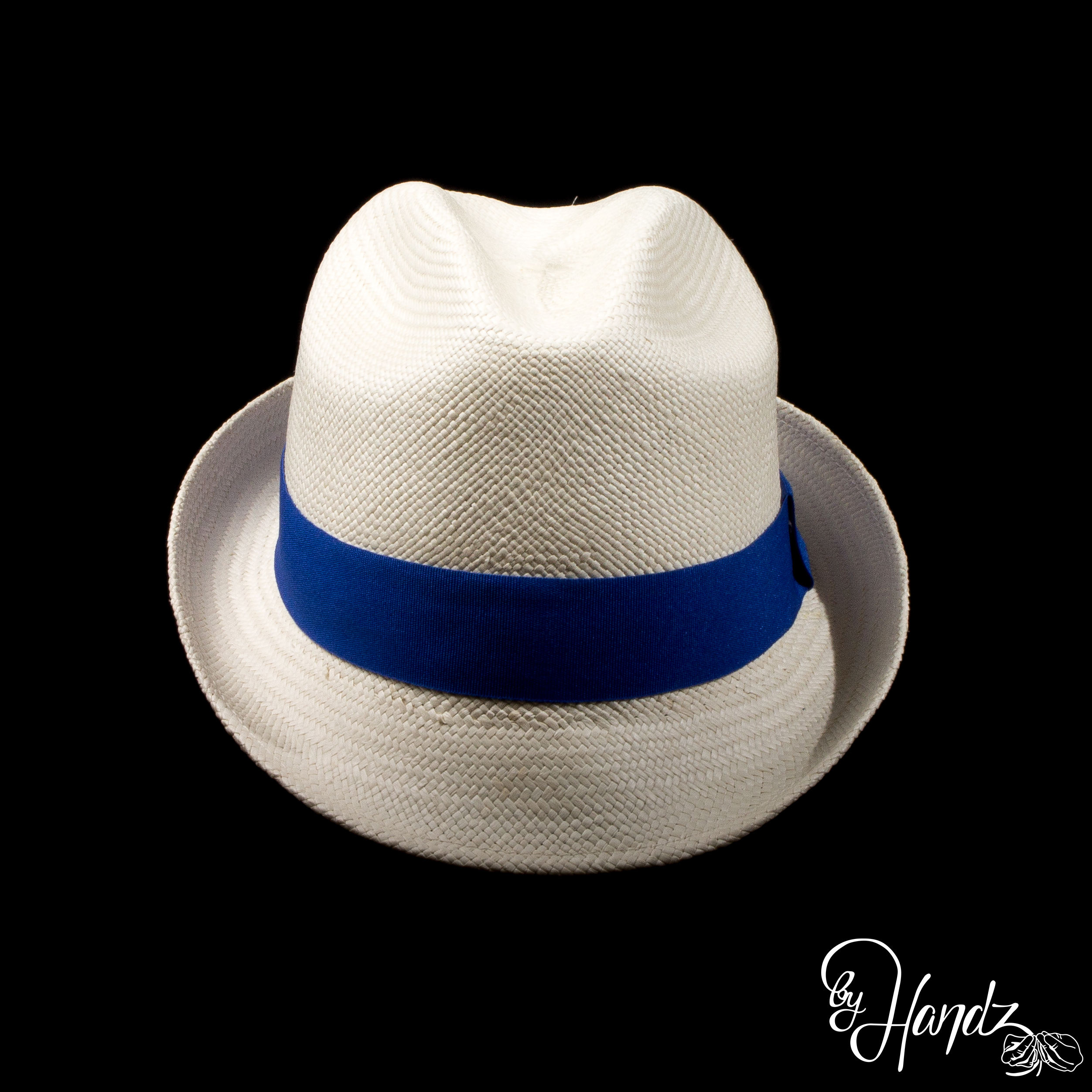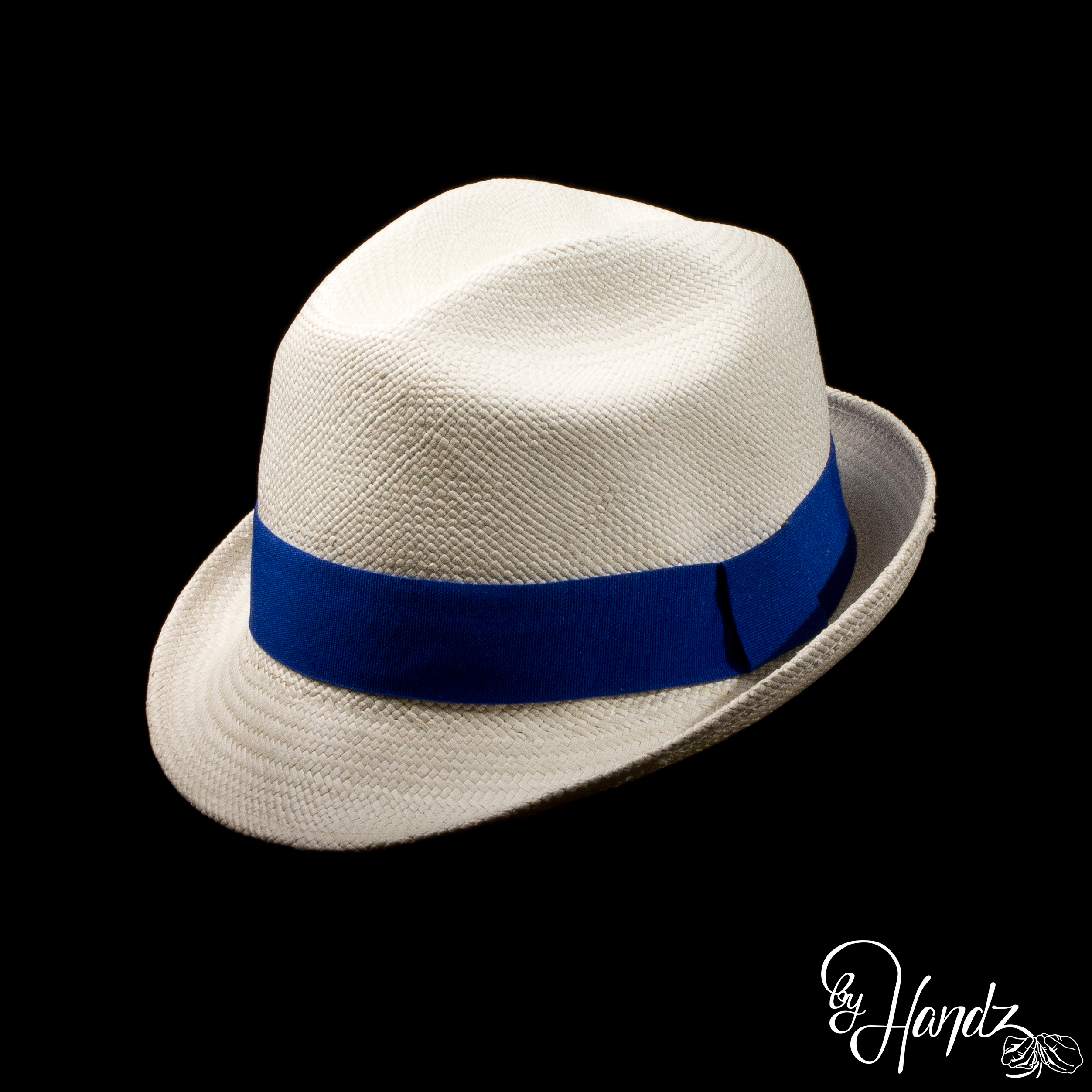 Trilby Style – Pear shaped crown: Unisex, Bleached color & Blue ribbon