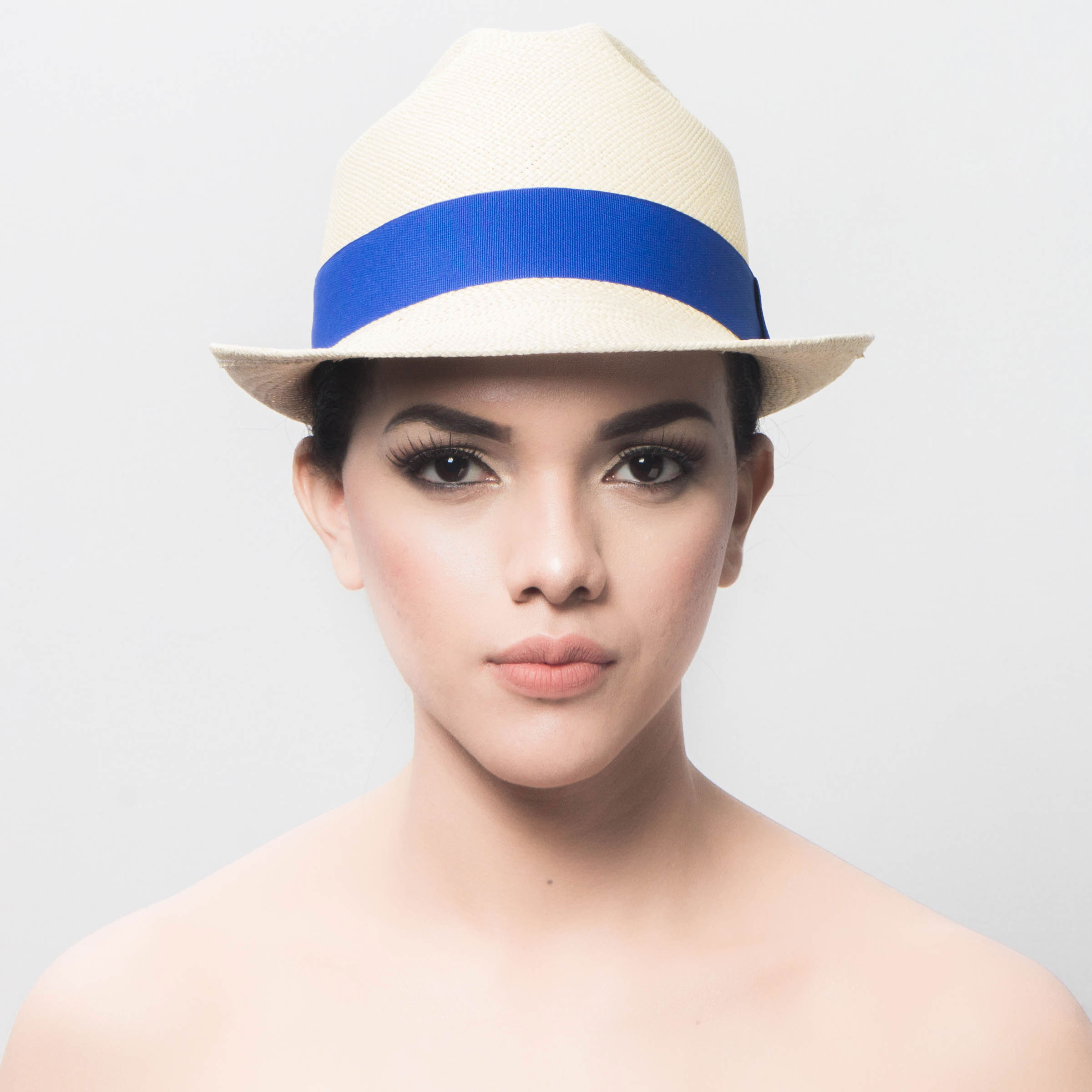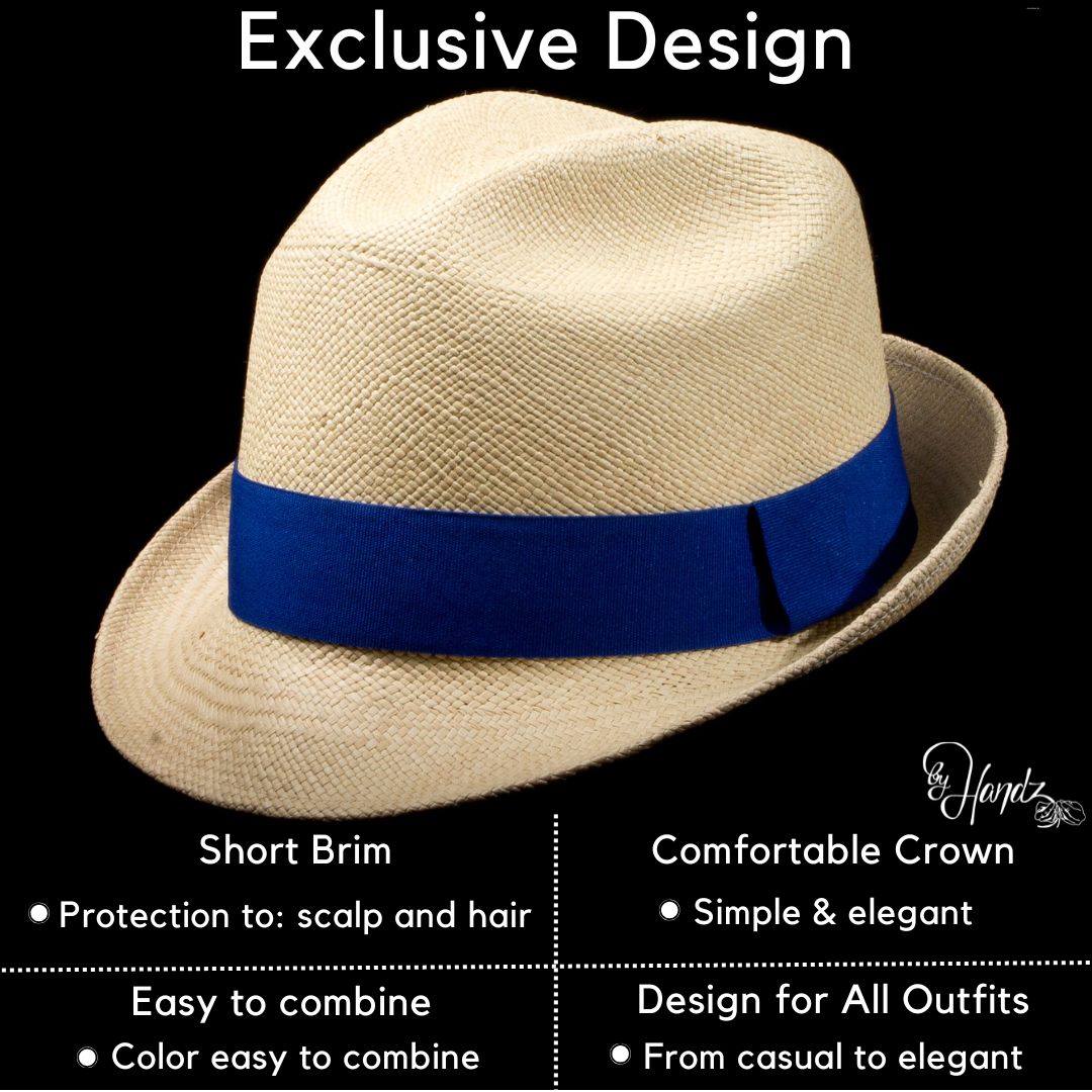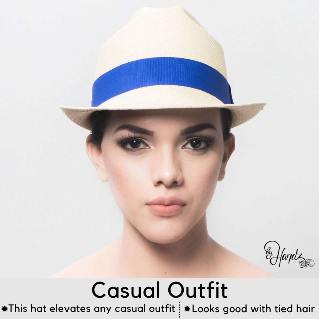 Trilby Style – Pear shaped crown: Unisex, Natural color & Blue ribbon