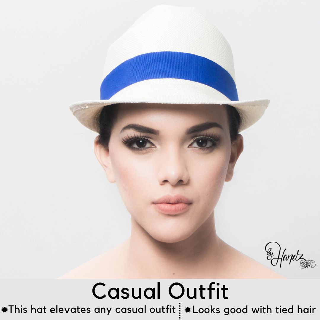 Trilby Style – Pear shaped crown: Unisex, Bleached color & Blue ribbon